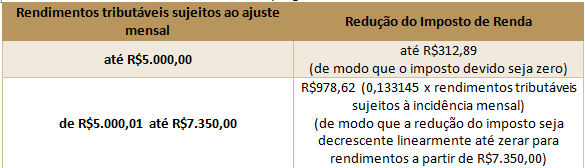 Rendimentos entre R$ 5.000,01 e R$ 7.350,00 terão redução parcial do imposto devido.